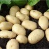 Introduced in 1879, the solanum tuberosum International Kidney potatoes are also known as Jersey Royals when grown in Jersey- however Jersey claim to have very specific soil conditions that make their potatoes special, so they are given an alternative name elsewhere. The potatoes have a kidney shape with creamy flesh and skin with shallow eyes. They are a second early variety potato, however if left in the ground for longer they will bulk up to be harvested as a maincrop. The International Kidney has a great distinctive, almost buttery taste, and can be boiled or used in salads.