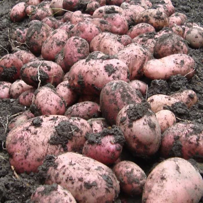 Originating from Ireland, the solanum tuberosum “Rooster” potato is hugely popular due to its distinct look and versatility. This late maincrop variety is easily recognised by its characteristic red skin. The ovular tubers have shallow eyes and pale yellow dry floury flesh. These potatoes are great all-rounders in the kitchen, lending themselves well to boiling, baking, roasting, and making chips.
