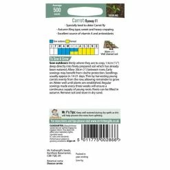 Our daucus carota Carrot “Flyaway F1 seeds produces plants that have been specifically bred for their resistance to carrot fly. Bred from the Autumn King variety, these pest-resistant carrots are a firm favourite with gardeners and have retained their vibrant colour, sweet flavour, and smooth skin. Perfect for growing in areas where carrot fly has been a problem.