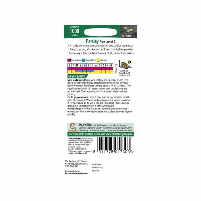 Plain leaved Parsley Seeds Mr Fothergill’s