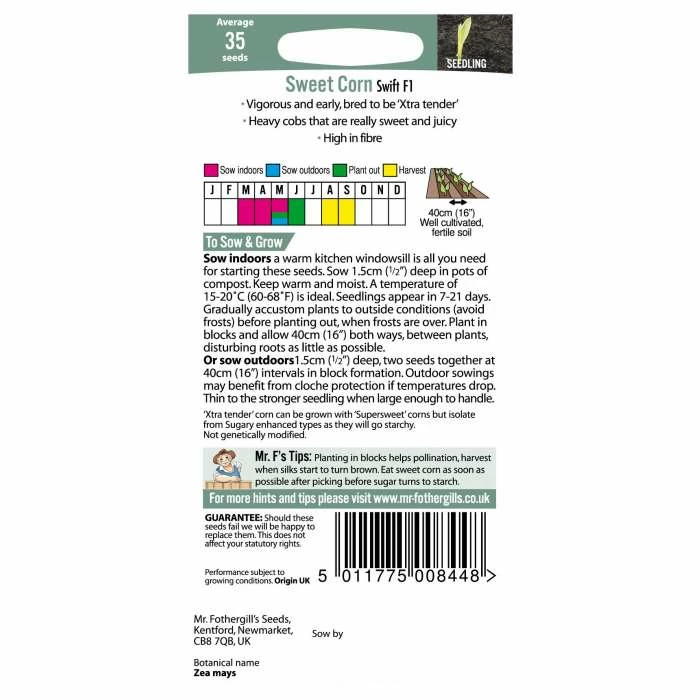 Sweet Corn “Swift F1” Seeds | Mr Fothergill’s
