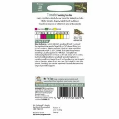 Our solanum lycopersicum Tomato “Tumbling Tom” red seeds are ideal for growing in baskets, containers, and window boxes. These plants produce early abundant yields of sweet, medium-sized cherry tomatoes throughout the summer that can be used in salads, sandwiches, and cooking. This compact bush variety can be grown both outdoors and in a greenhouse, and has a trailing habit that will cascade beautifully over the edges of containers. It is easy to grow with no side shooting or training required, and will grow to a determinate length.